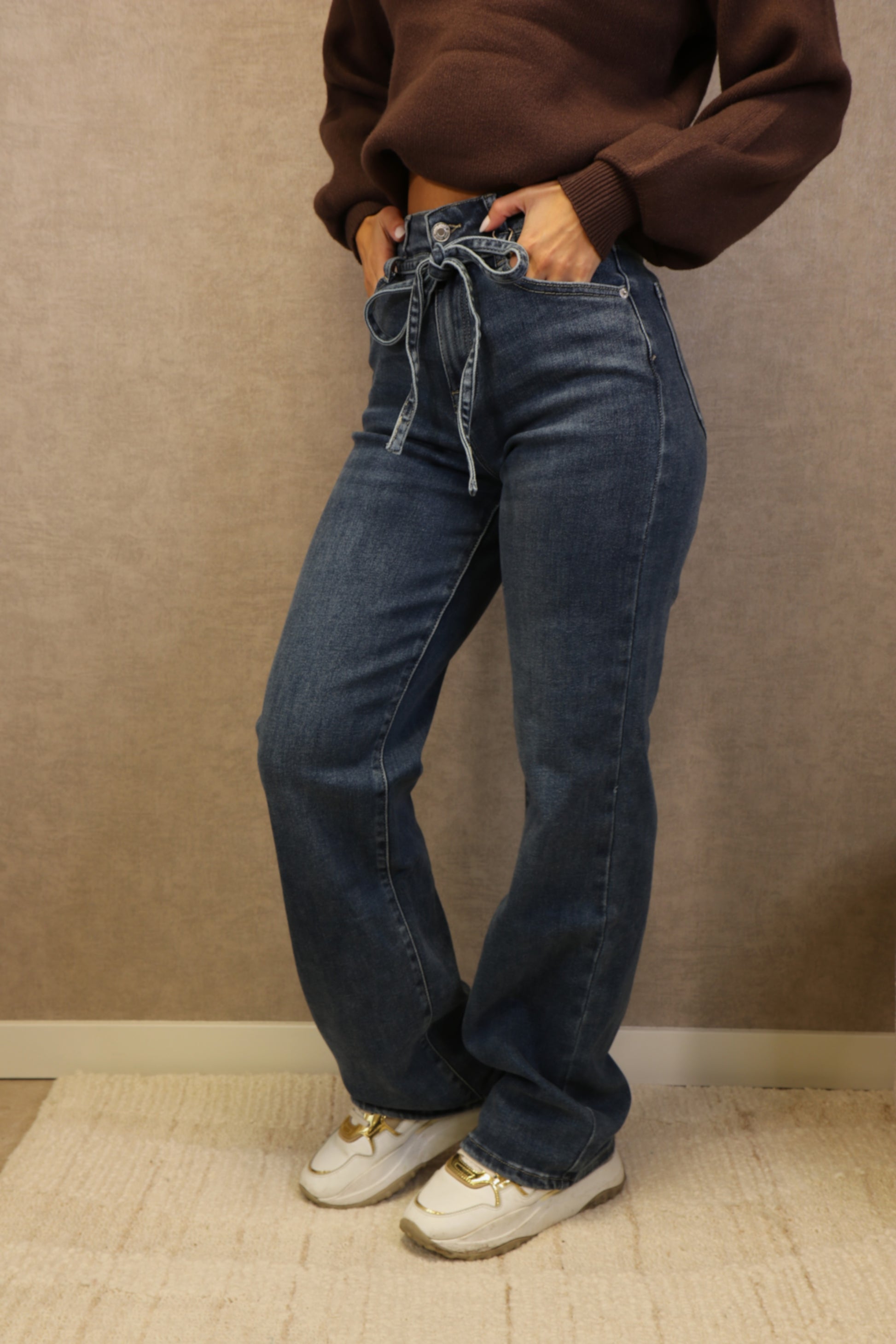 De ceintuur is ook uit de broek te halen voor een tijdloze basic jeans.